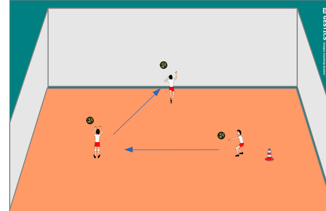 Ci sono 3 bambini che si passano la palla facendo un bagher un palleggio e infine una schiacciata