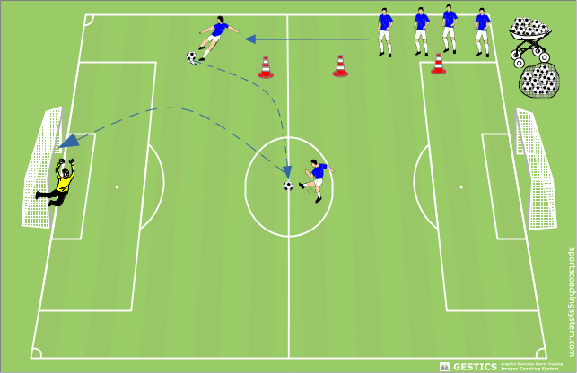 il calciatore passa la palla all' altro giocatore al centrocampo e va a fare goal