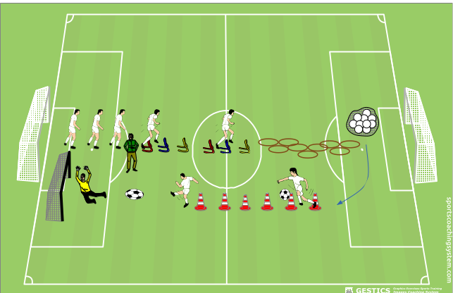 Percorso con stacoli,cerchi,palloni,slalom e tiro