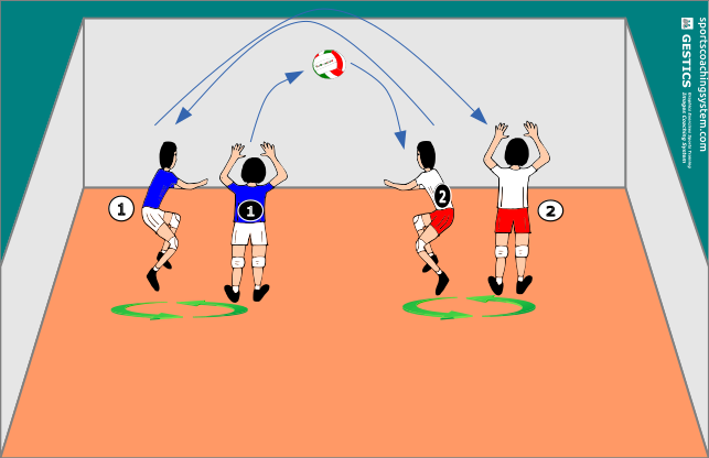 La prima persona lancerà la palla contro il muro con un palleggio e il suo compagno li dovrà rispondere con il bagher alternandosi a ogni passaggio.