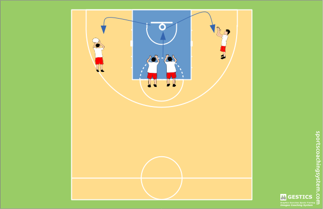 i due giocatori si posizionano sulla linea dal tiro libero e anche facendo il canestro tirano dove atterra la palla