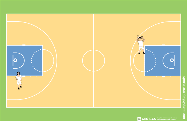 Formare una fila e procurarsi un pallone poi correre palleggiando fino al canestro e tirare dopodiché passare il pallone all’altro giocatore e ritornare infondo alla fila
