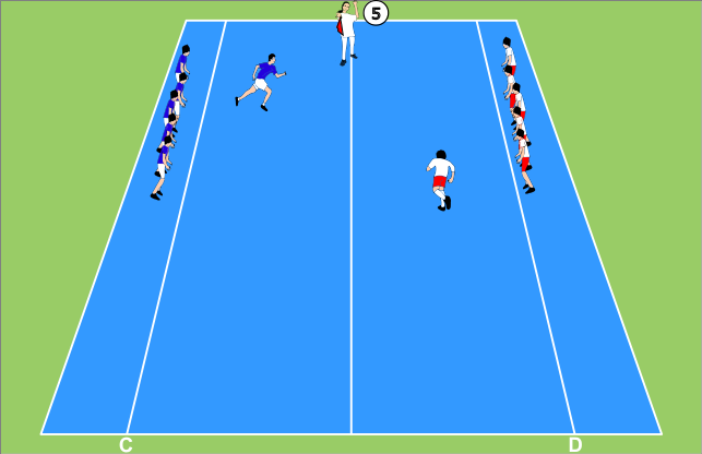 una linea che divide il campo a metà dove si metterà chi regge la bandiera; altre due linee ai lati del campo, dove dietro vengono posizionate le squadre.