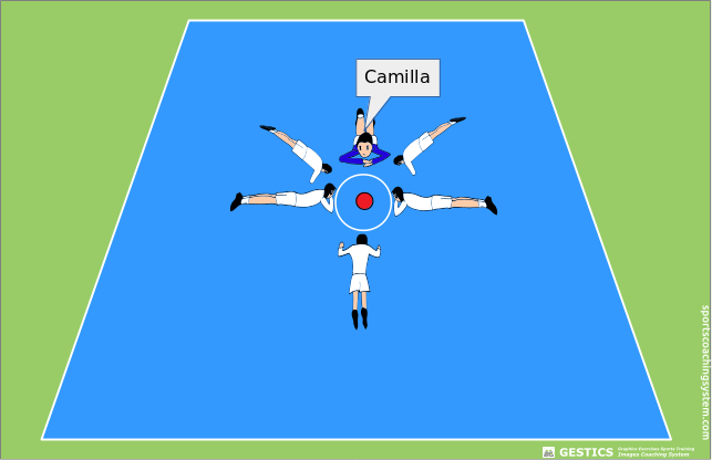 SI GIOCA IN 20, IL PALLONE STA AL CENTRO ED I BAMBINI A BORDO E FANNO UN CERCHIO, DISTESI IN TERRA A RAGGIERA