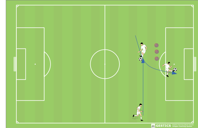 l'esercizio consiste nel presentarsi davanti alla porta e tirare dopo un triangolo di passaggi con un mio compagno di squadra.