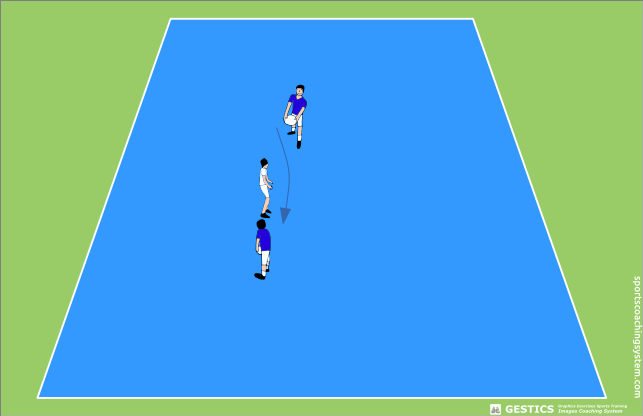 COME GIOCARE: Le 2 persone agli estremi devono passarsi la palla senza permettere che l'altro prenda la palla, l'altro quindi deve cercare di intercettare il pallone. Se la persona in mezzo riesce a prendere la palla, la persona che avrebbe dovuto prendere la palla, deve andare in mezzo e fare quello che prima faceva l'atleta al suo posto
