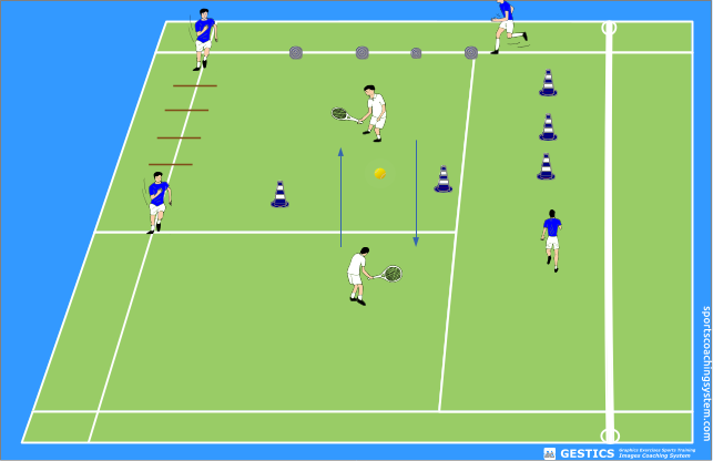 allora servno 8 persone due pallegianoe gli altri quatro corrono slalom paso laterale e salti