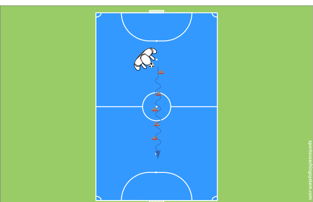 Una persona fa lo slalom con la palla tra i piedi infine tira la palla in porta
